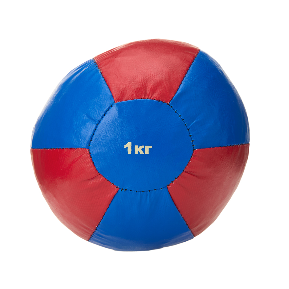 Медбол 3C143-K64, 1кг, иск.кожа, наполнитель резиновая крошка, диам. 16 см, маш сшивка, сине-красный (51544)