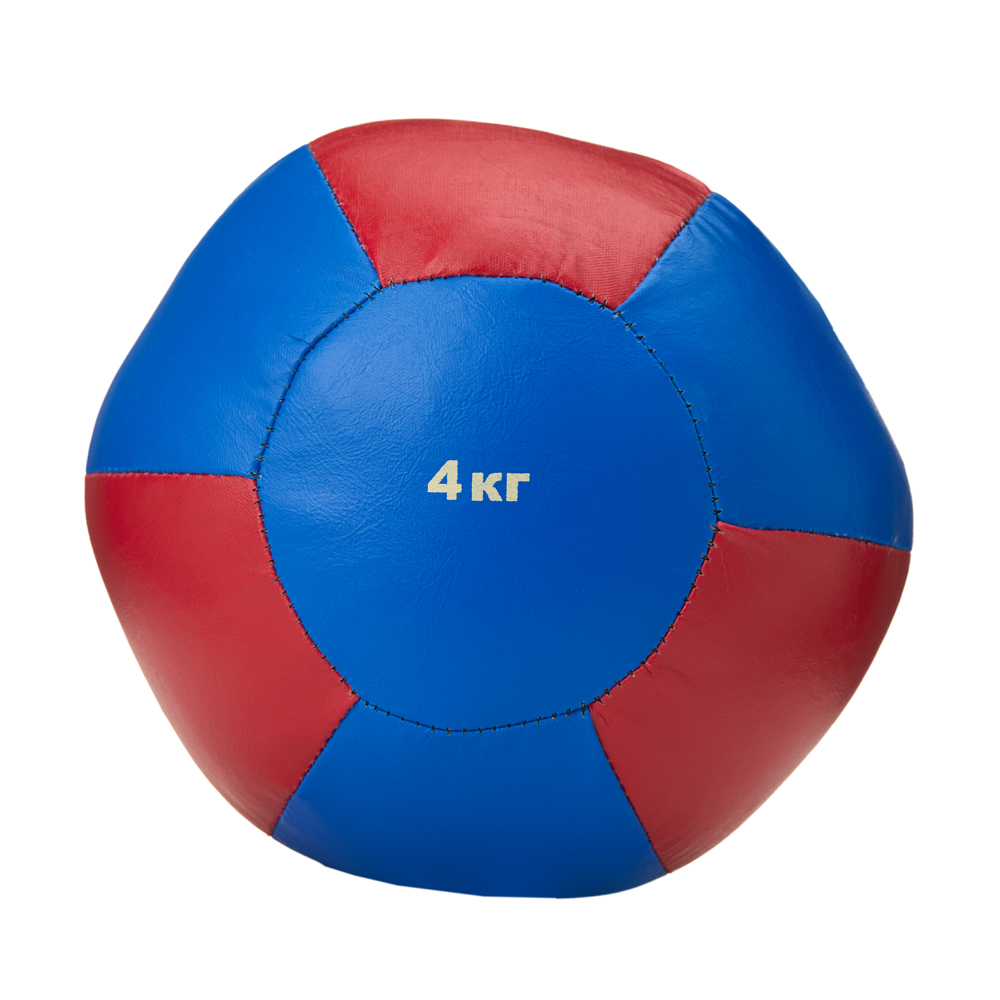 Медбол 3C146-K64, 4кг, иск.кожа, наполнитель резиновая крошка, диам. 21 см, маш сшивка, сине-красный (51547)