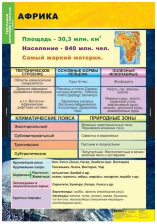 Комплект таблиц "География. Материки и океаны. 7 класс" (10 шт.). (54038)