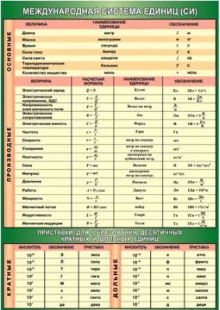 Международная система СИ + приставки для образования десятичных кратных и дольных единиц 100х140 винил. (58878)