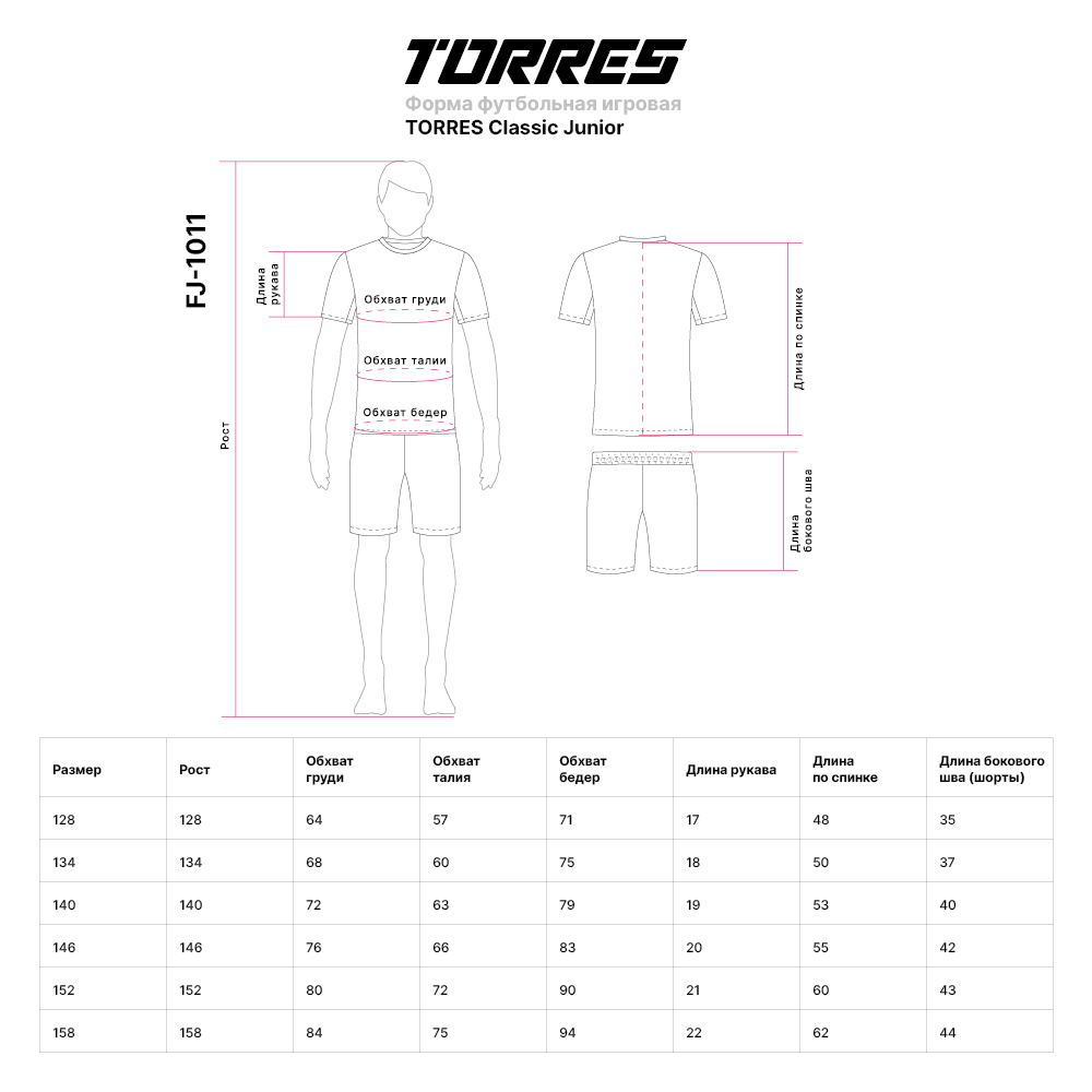 Бренд: TORRES Размер: 134 см Вид: Форма Вид товара: TORRES экипировка Материал: Полиэстер Пол: Унисекс Страна-производитель: РОССИЯ Цвет: Желтый/Черный Артикул: FJ-1011-072-134