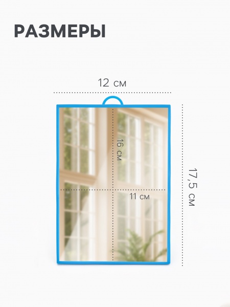 Зеркало настольное, прямоугольное, настенное, 12×17 см, (11×16 см), МИКС. (54625)