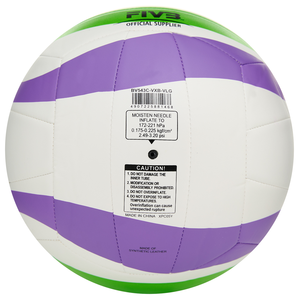 / Спорт / Волейбол / Пляжный волейбол / Мяч вол. пляжн. MIKASA BV543C-VXB-VLG, 18 панелей,синт.кожа (ТПУ),маш.сш., бут.кам, бело-фиол-зел (55363) |