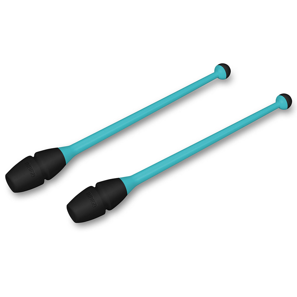 Булавы для худ. гимнастики INDIGO, IN018-BBK, 41 см, пластик, каучук, в компл. 2шт, бирюз-черн (55617)